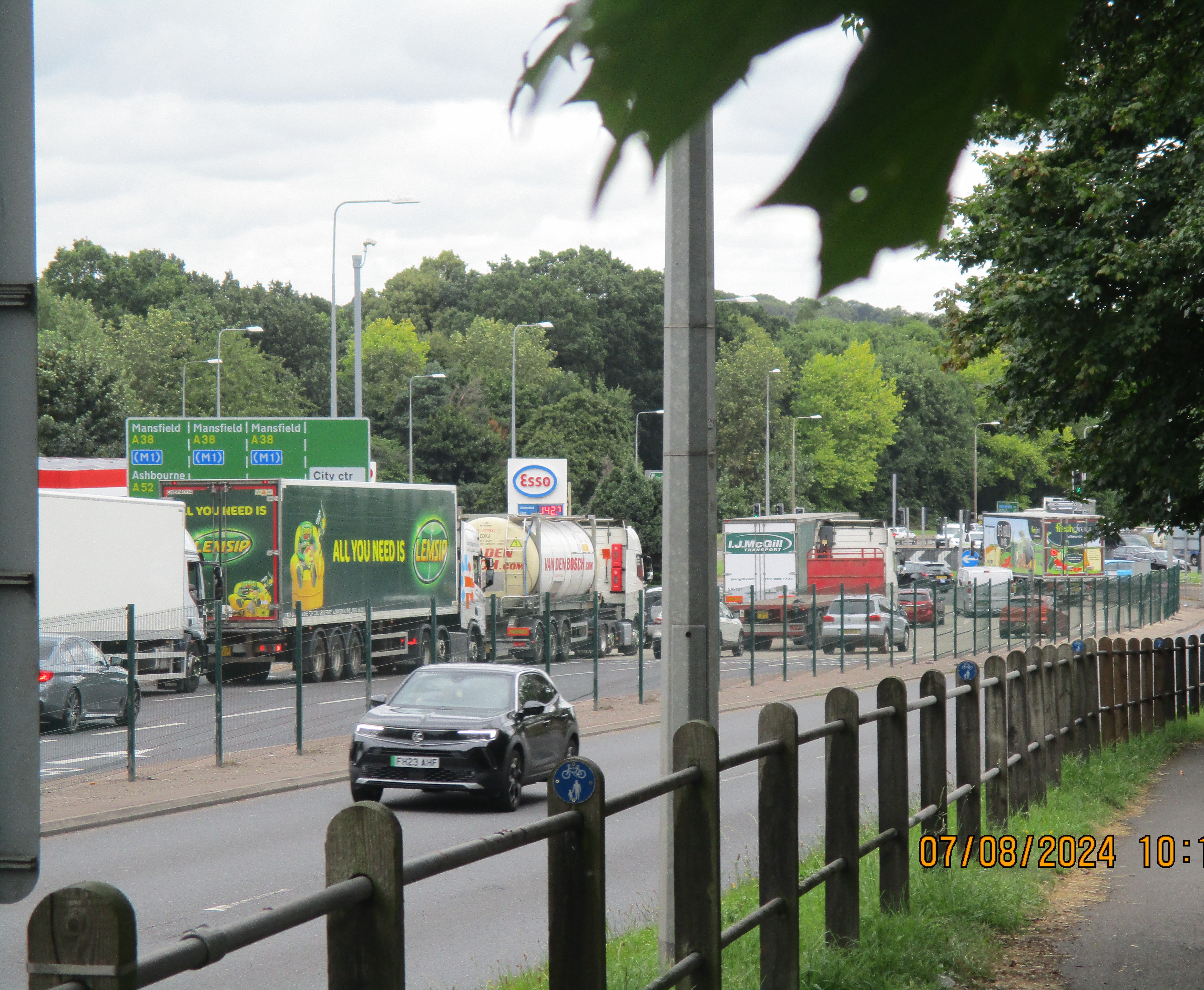 On 7th August, between 9.25 and10.27 am, over 200 HGV lorries were counted on Markeaton Island and A38. This would indicate that modal shift of freight, from road to rail, is failing. National Highways admitted, at the A38 public inquiry, that lorry numbers would increase if the scheme went ahead.